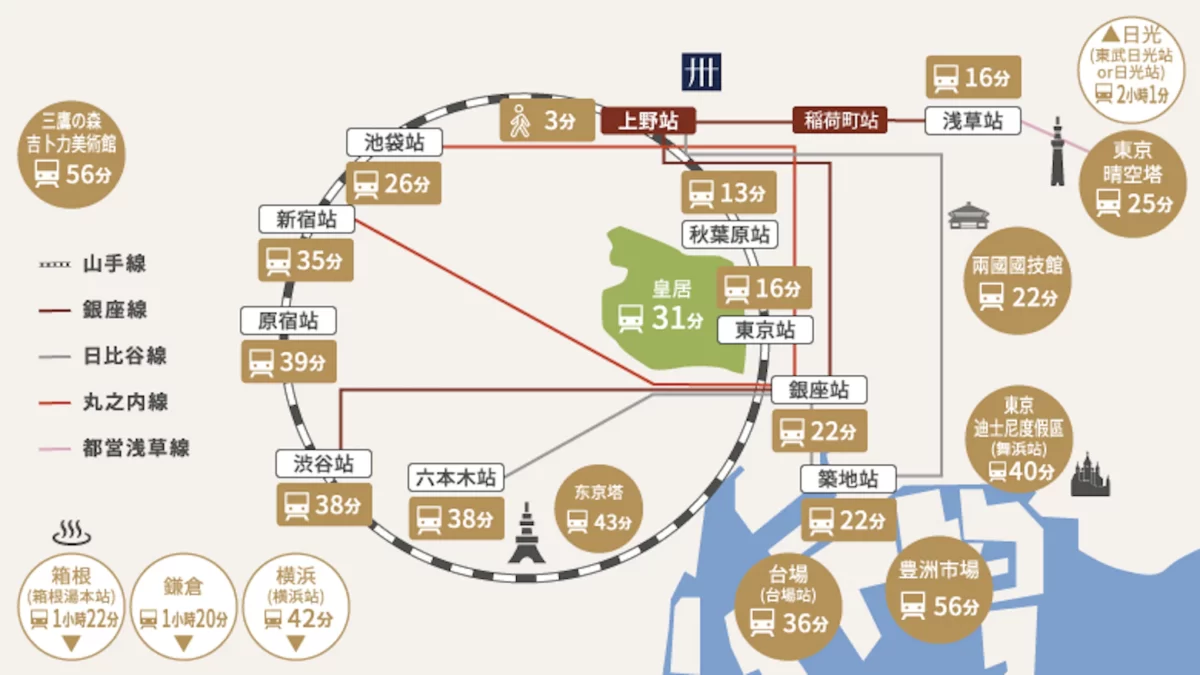最近車站出口 | JR山手線、京浜東北線、上野東京ライン 上野站 入谷剪票口 徒歩3分 東京メトロ銀座線・日比谷線 上野站 浅草口 徒歩7分 京成スカイライナー 京成上野站 正面口 徒歩10分 京成本線 京成上野站 正面口 徒歩10分 |