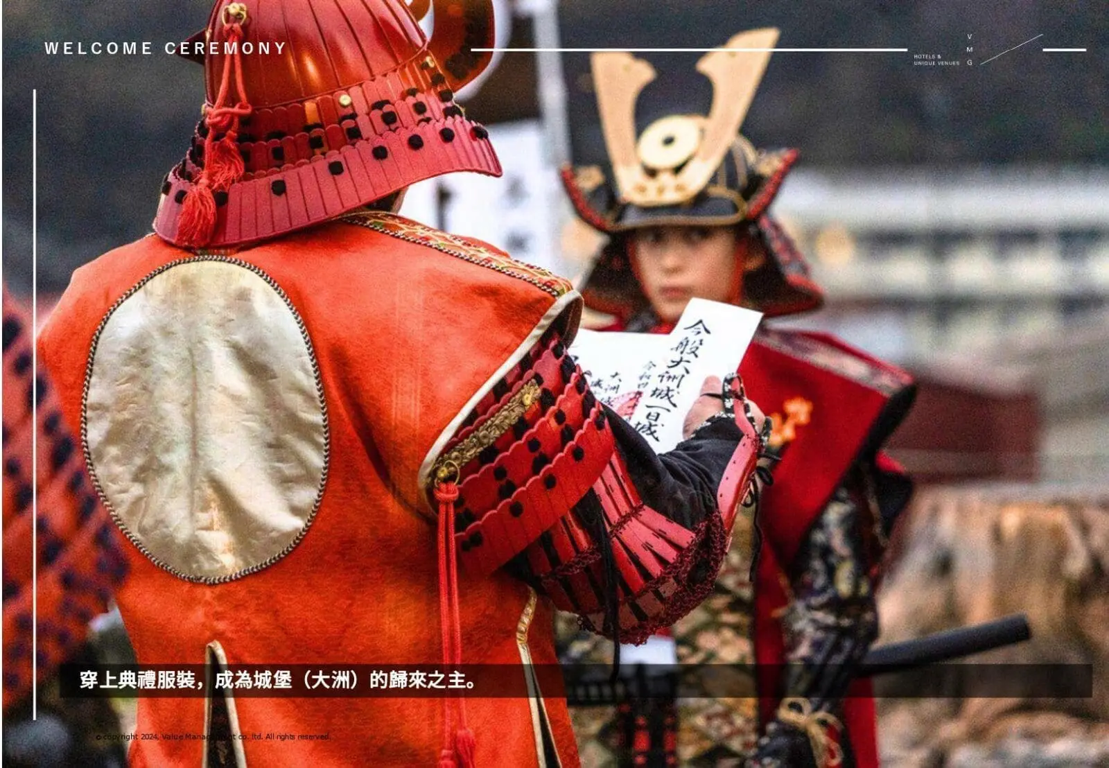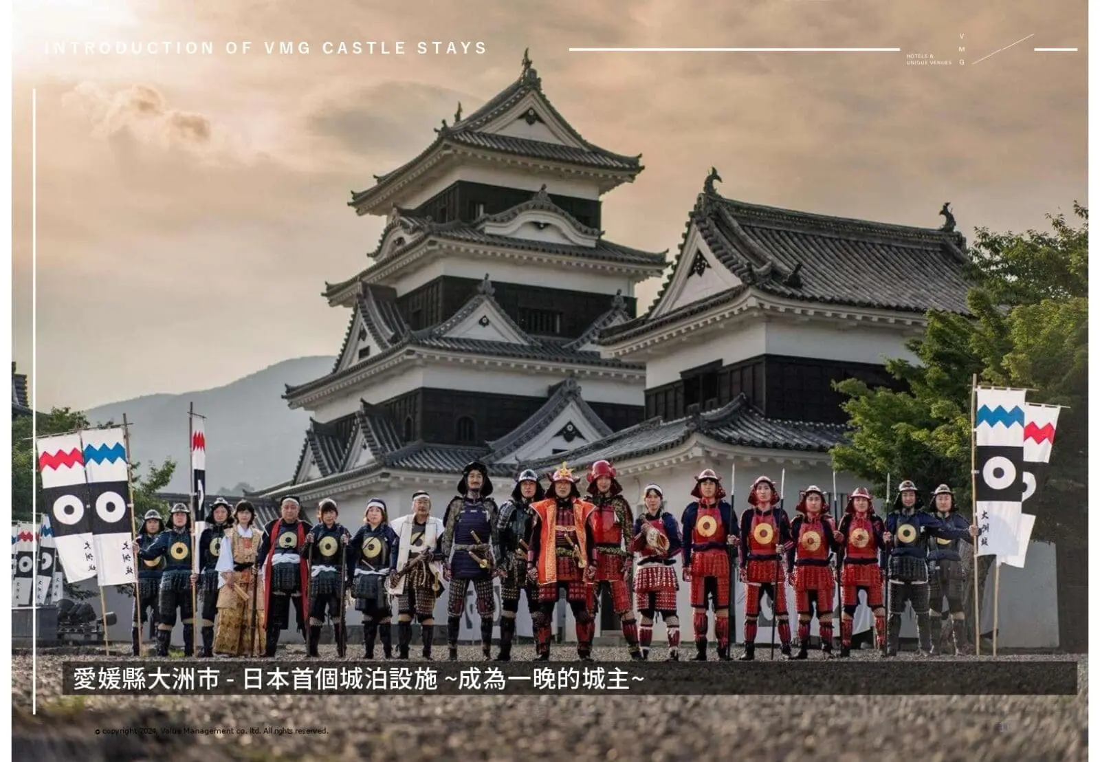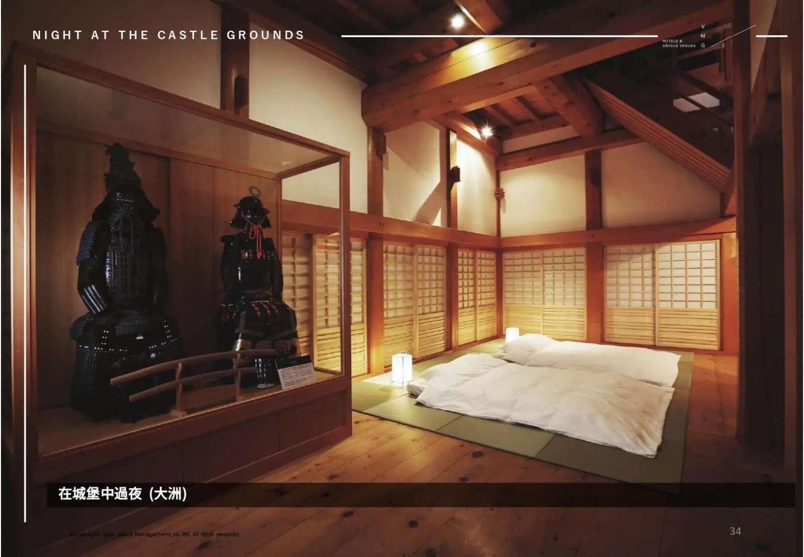 核心理念:「這一晚,你就是城主」——入住復原的古城堡,體驗作為城主的生活,參加專屬活動,如穿戴盔甲、城堡導覽、茶道及禪修