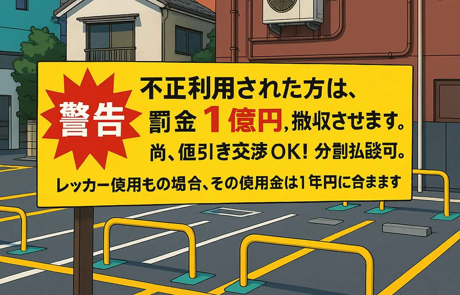 到日本自駕旅遊的朋友一定注意過一些停車場旁邊令人心驚的警告標語,例如:「不正駐車の場合は◯万円請求します!」(違規停車將索賠◯萬日圓),甚至有誇張到直接寫「罰金一億日圓」的牌子!乍看之下彷彿只要一時停錯車,就會傾家蕩產。