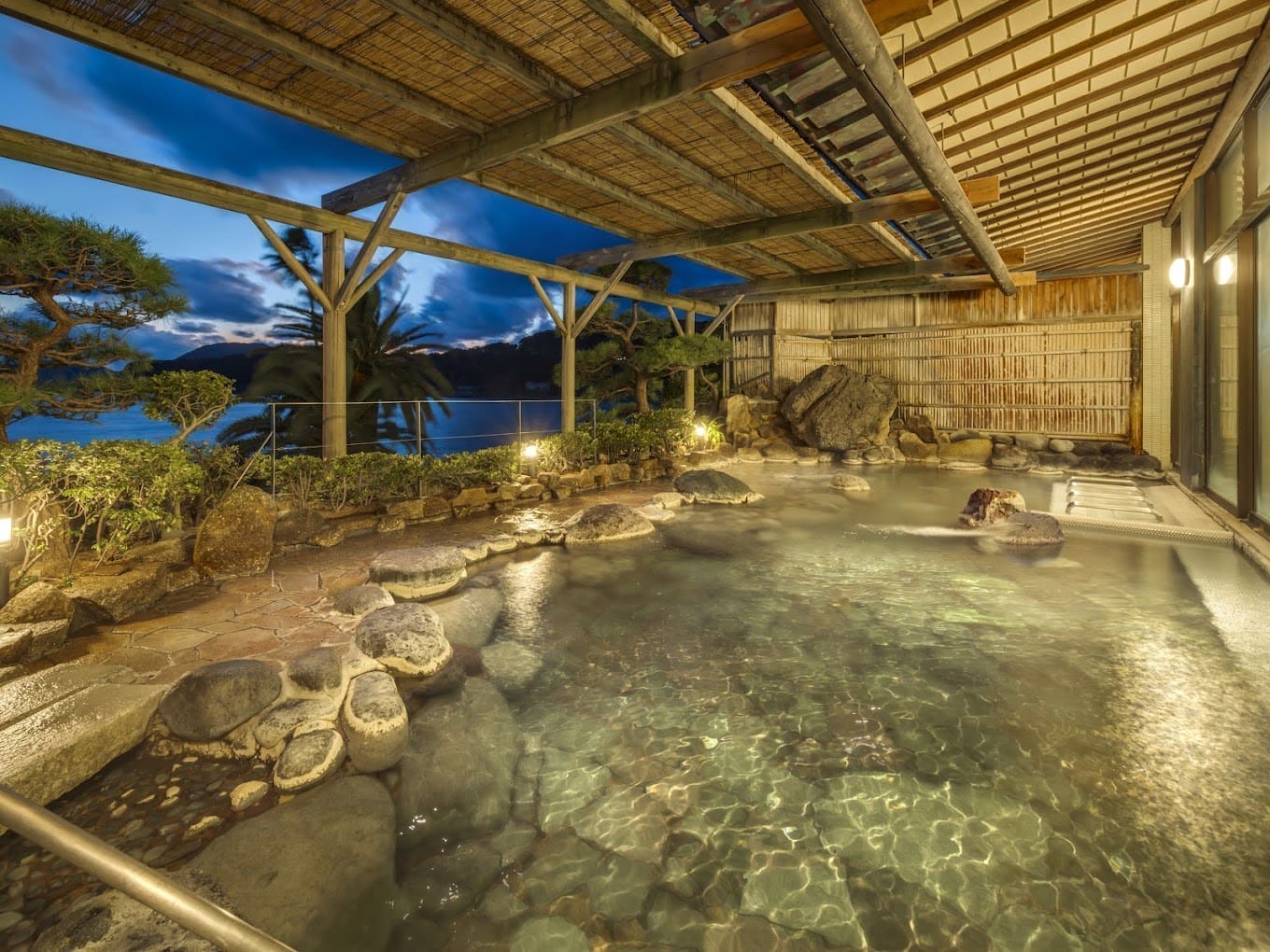 伊豆銀水莊飯店是一座位於伊豆地區的高級溫泉旅館,以其極致的服務和美麗的自然景觀而著稱。飯店結合了傳統日式建築與現代化設施,每間客房均設有可眺望海景或山景的大窗戶,部分房型還配有私人露天溫泉。公共溫泉設施寬敞,包括露天風呂和海景溫泉池,讓人徹底放鬆。餐飲方面,銀水莊提供豐富的當地海鮮與四季食材,精緻呈現伊豆的飲食文化。飯店周圍自然環境優美,是探索伊豆風景的理想住宿選擇。