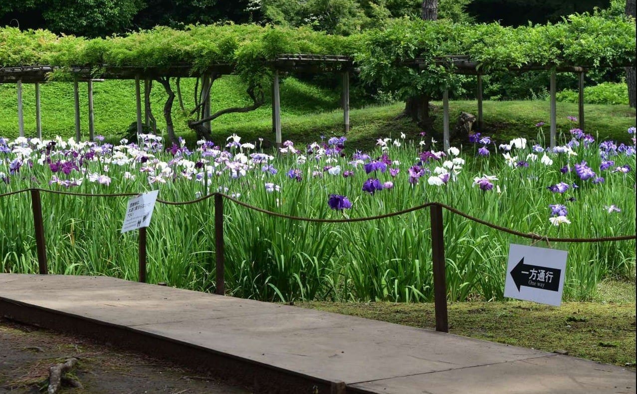 東京東區的靜謐花園,每年初夏開滿上百種花菖蒲,色彩柔美、品種繁多。園內步道規劃完善,是賞花、攝影與散步的理想地點,享受花香與水景交織的清涼時光。