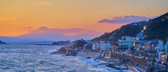 鐮倉海濱公園稻村崎地區以其天然草坪廣場和沿海自然美景聞名,是鐮倉不容錯過的旅遊勝地。遊客可以欣賞到以江之島為背景的富士山美景,這一畫面堪稱日本沿海風光的象徵。
