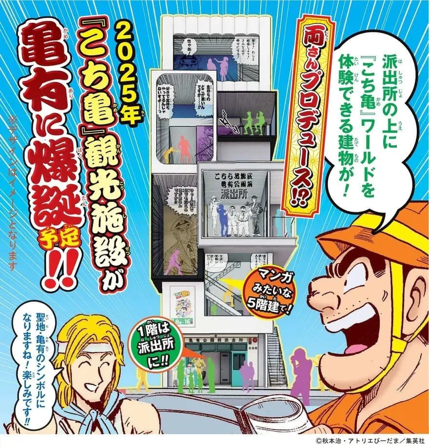 以漫畫《這裡是葛飾區龜有公園前派出所》為主題的觀光設施,讓你近距離感受龜有町的魅力。1樓還原了派出所的設計,是拍照打卡的絕佳地點。