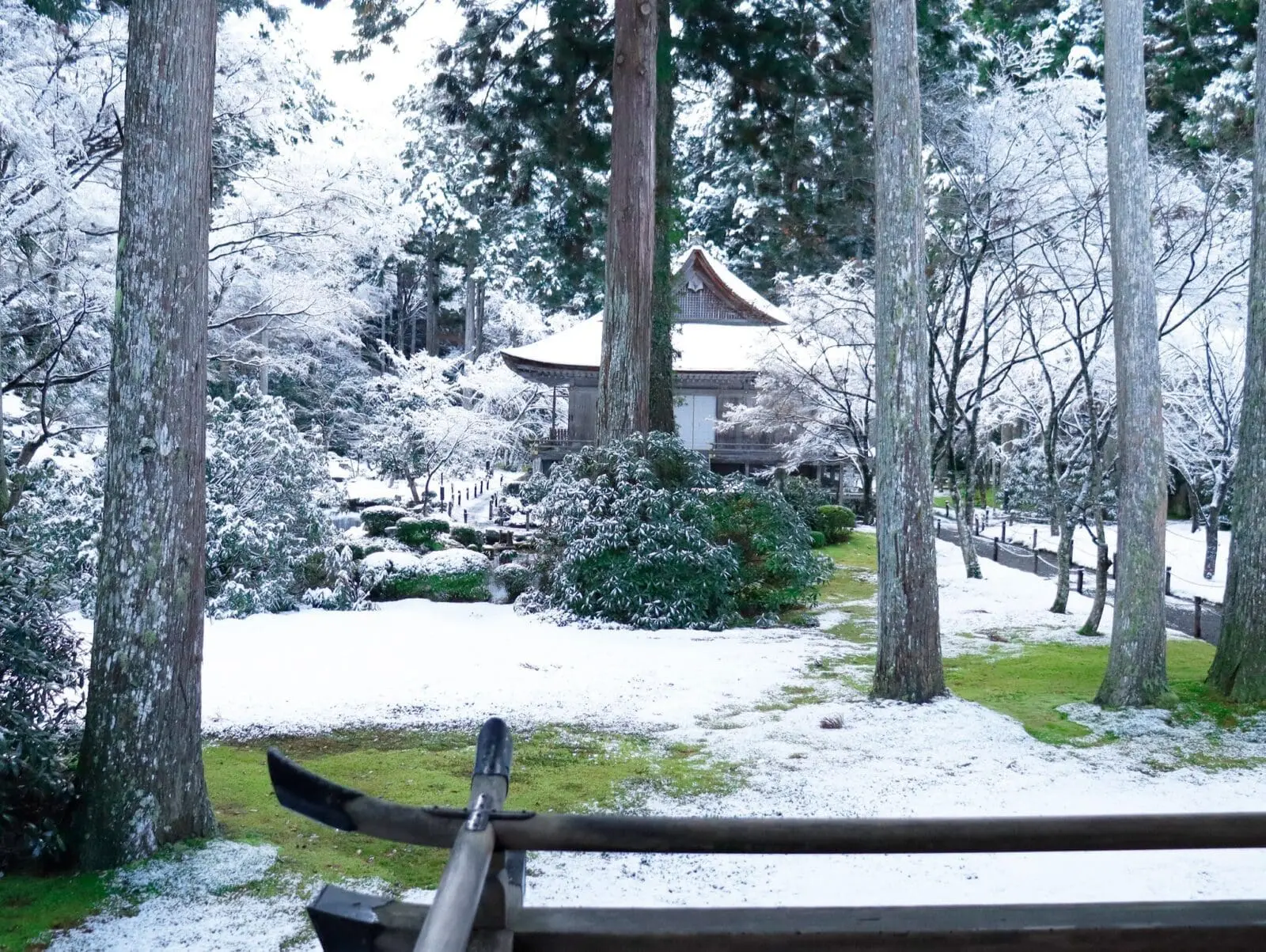 「邊喝熱茶邊看雪,這不就是冬天的儀式感嗎?」寶泉院的特色就是一邊賞雪一邊享用抹茶與和菓子,讓你在寒冷的冬天感受到暖暖的幸福感,超適合來這裡放鬆心情。
