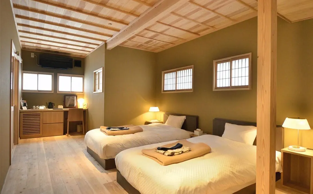 竹田城 城下町 ホテル EN位於被稱為「天空之城」的竹田城遺址腳下,讓您體驗歷史與自然交織的寧靜時光。這家精品分散型酒店利用擁有400年歷史的舊木村酒造場進行改建,將傳統的米倉、酒窖和母屋改造成獨特的住宿空間。酒店僅有13間客房,保留了江戶時代的建築風貌,讓您感受古老城下町的風情。此地美食豐富,您可以品嚐但馬牛、岩津蔥等當地特產,並在靜謐的街道中探訪寺廟、古建築,踏上歷史浪漫的旅程,感受四季流轉的竹田之美。