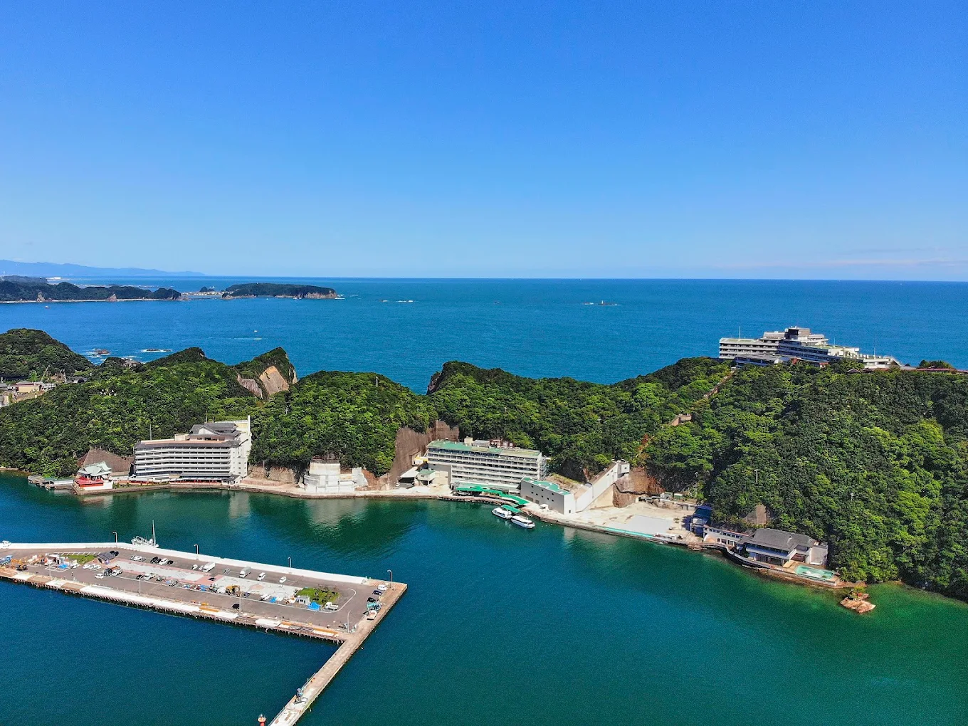 位於勝浦港的浦島旅館,以壯觀的「忘歸洞溫泉」聞名,天然海蝕洞內設有露天溫泉,泡湯時可聽浪濤、觀海天變幻。館內設施完善,擁有多個不同泉質浴場,讓旅客盡享泡湯樂趣。客房舒適寬敞,多數可眺望太平洋,夜晚可見星空映海的浪漫景致。餐飲以新鮮海產為主,特別是鮪魚料理深受歡迎,為溫泉與美食兼具的度假首選。
