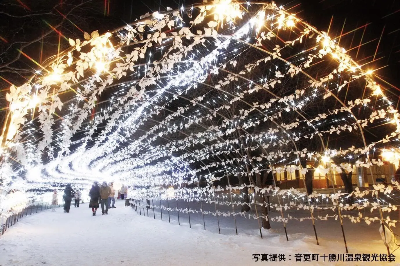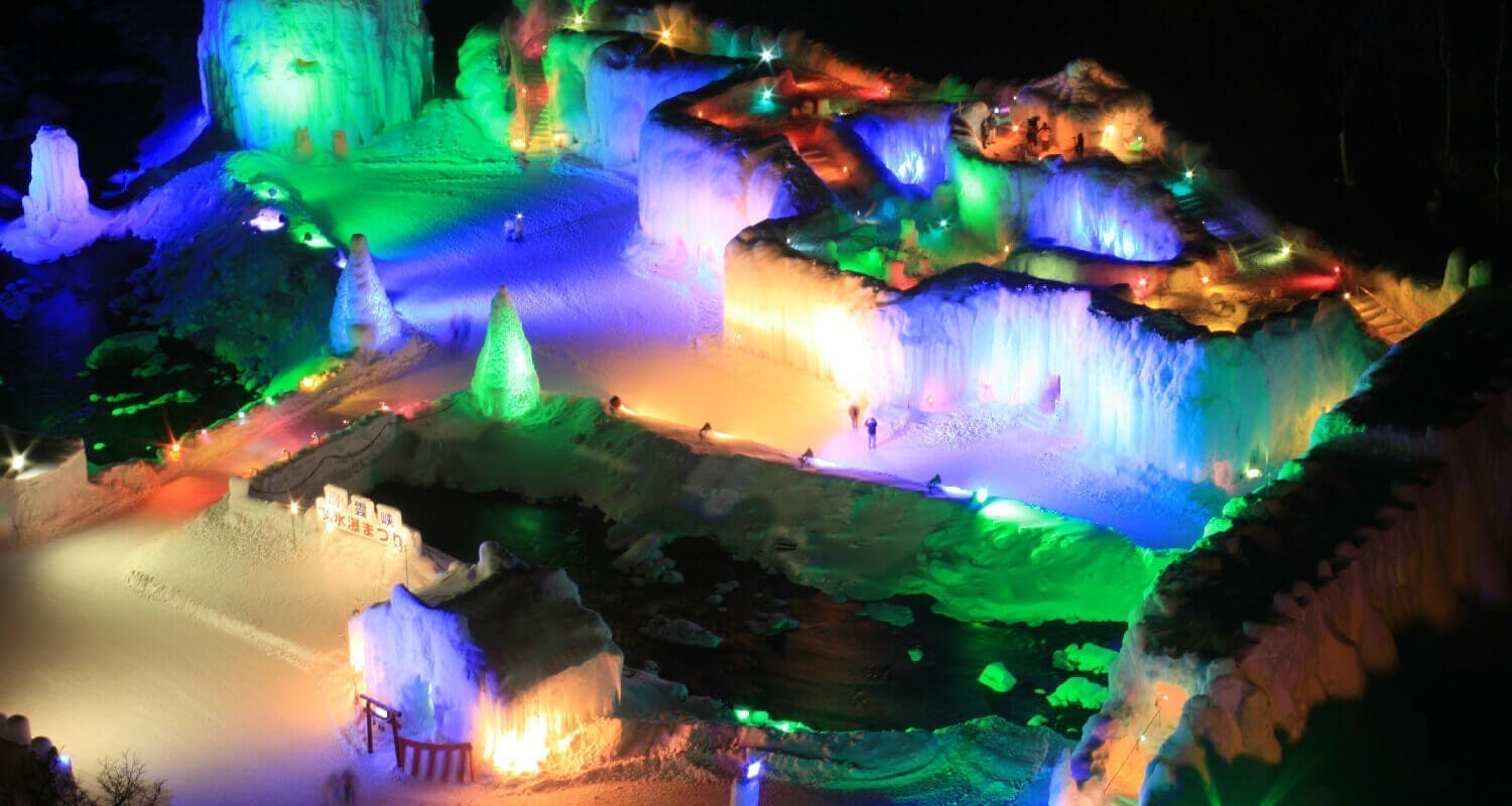 峽谷瀑布結成冰加上四周冰瀑造型的雪洞在燈光照射下呈現美麗的自然景觀充滿震撼力的冰柱、冰隧道、還有高達15公尺高的冰製展望台等,層雲峽嚴冬自然力量所形成的各式冰製建築林立眼前,可說是只有北海道才可能體驗的慶典。夜晚燈光打照在冰製建築上,產生出與白天截然不同的夢幻氣氛。