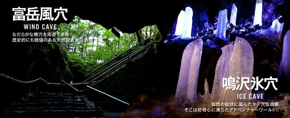 這兩座洞窟由富士山熔岩形成,終年冰涼,即使夏天洞內溫度仍維持3°C。可觀賞冰柱、熔岩棚、天然冰洞地形,非常適合親子同遊或想避暑的朋友,探險感十足!